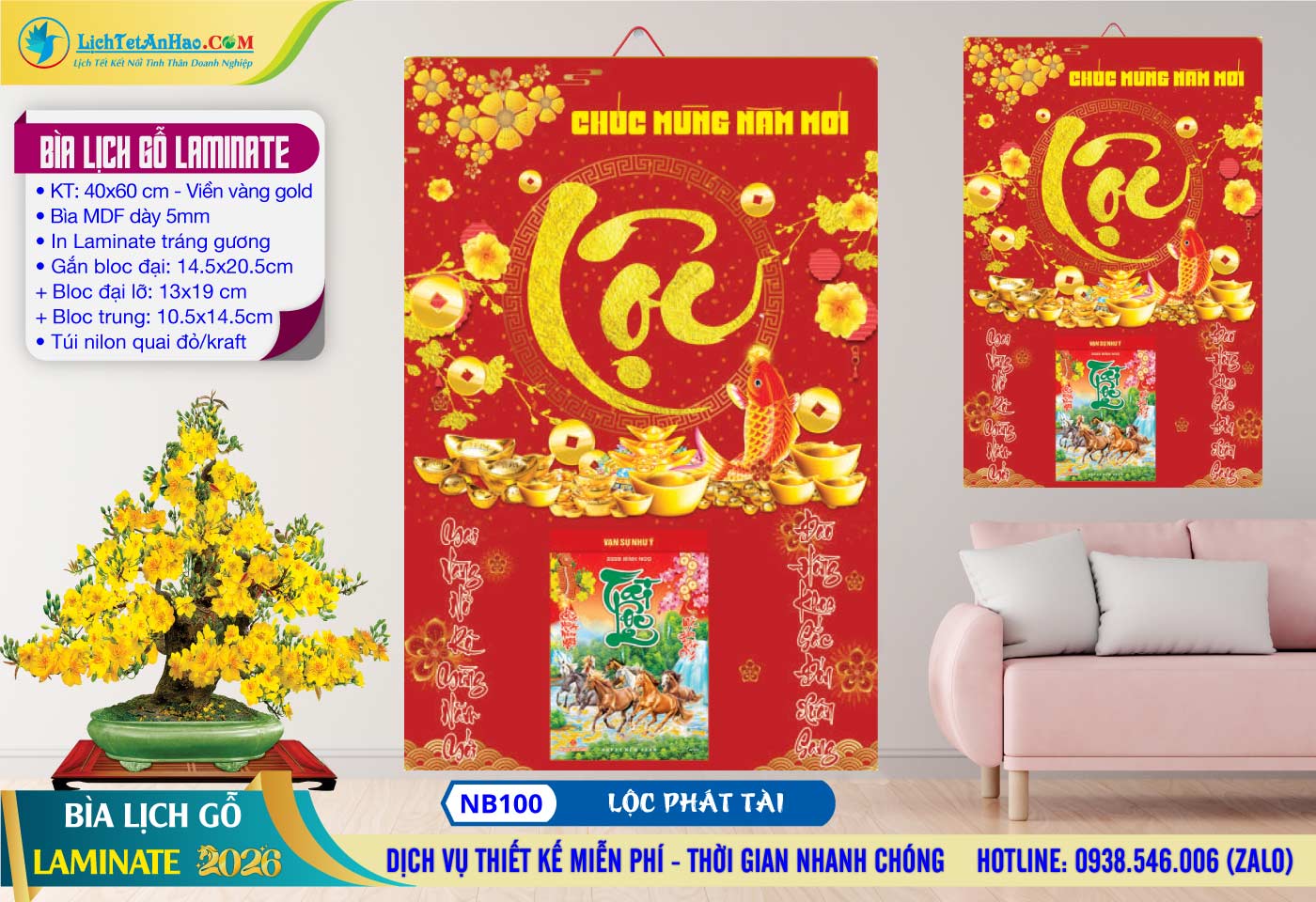 Bìa Lịch Gỗ (40×60) Laminate – NB100 – Lộc Phát Tài
