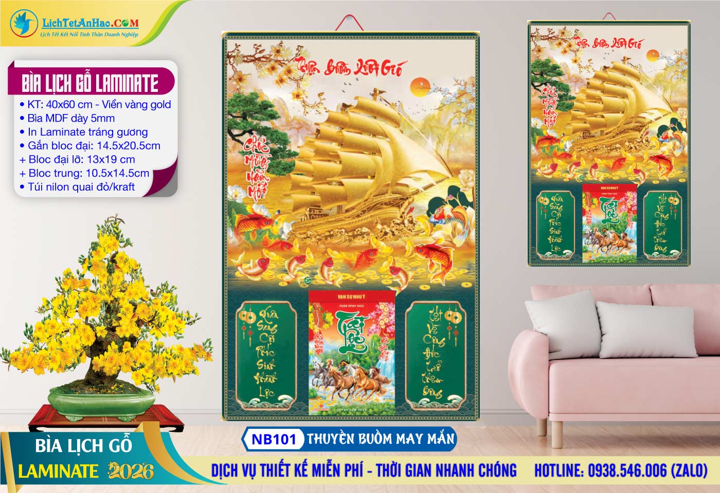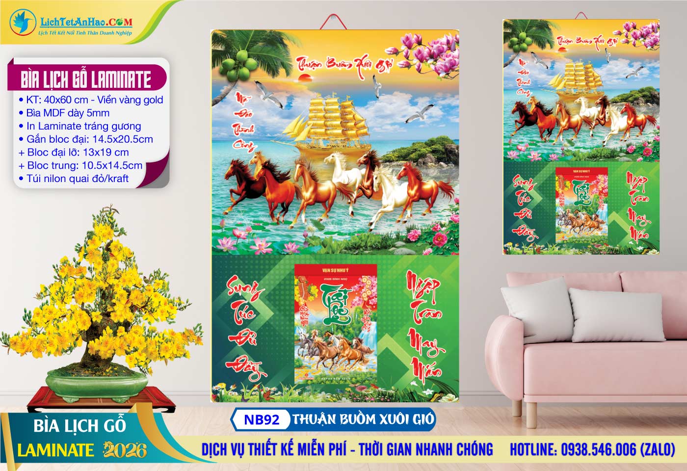 6 – Bìa Lịch Gỗ (40×60) Laminate – NB92 – Thuận Buồm Xuôi Gió
