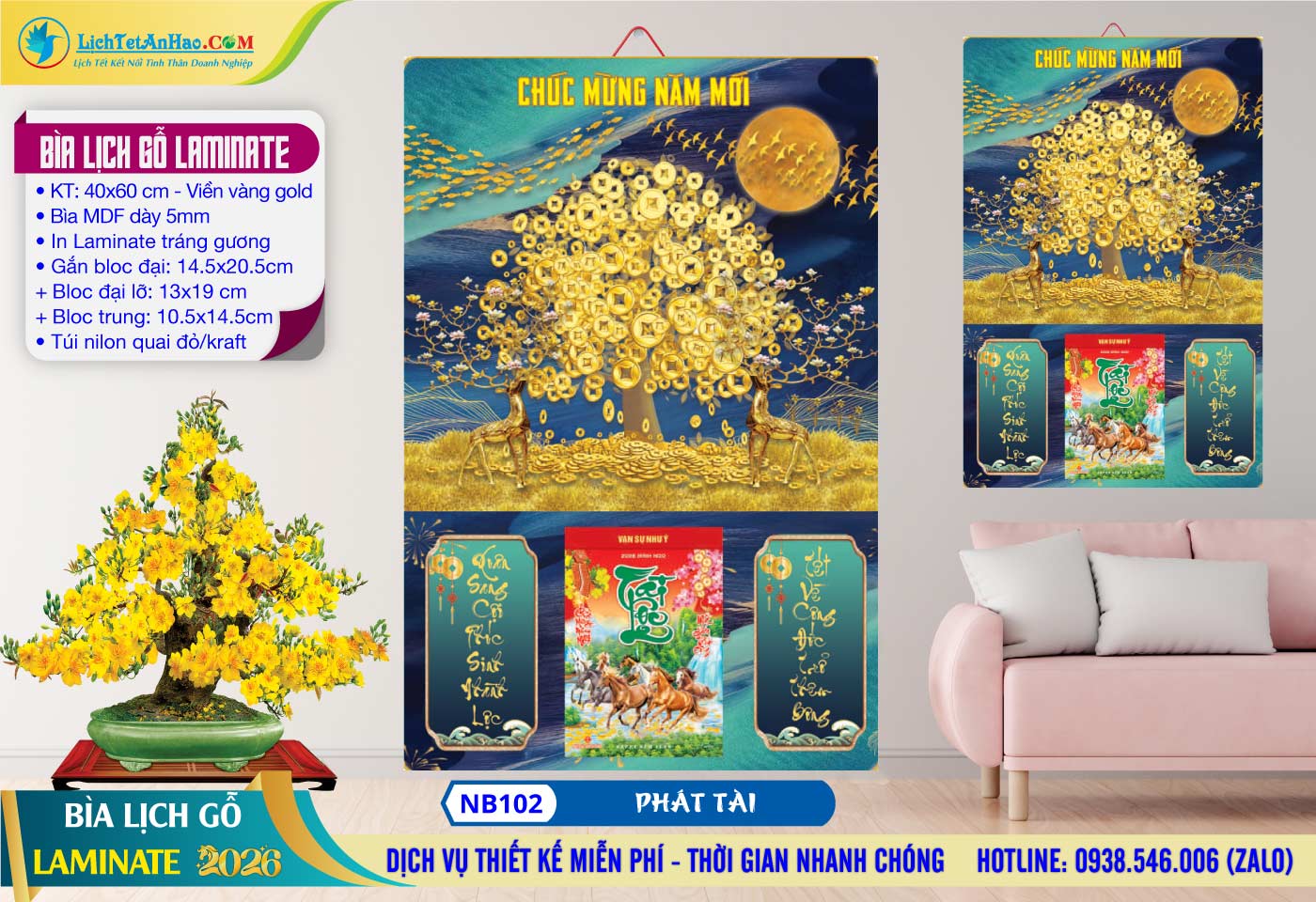 Bìa Lịch Gỗ (40×60) Laminate – NB102 – Phát Tài