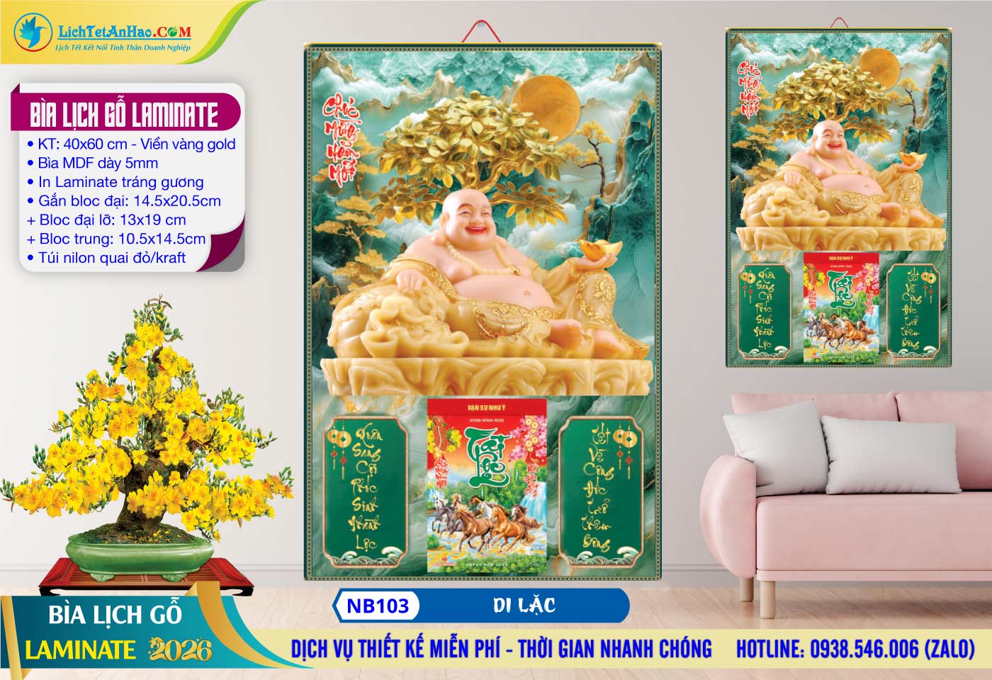 17 – Bìa Lịch Gỗ (40×60) Laminate – NB103 – Di Lặc