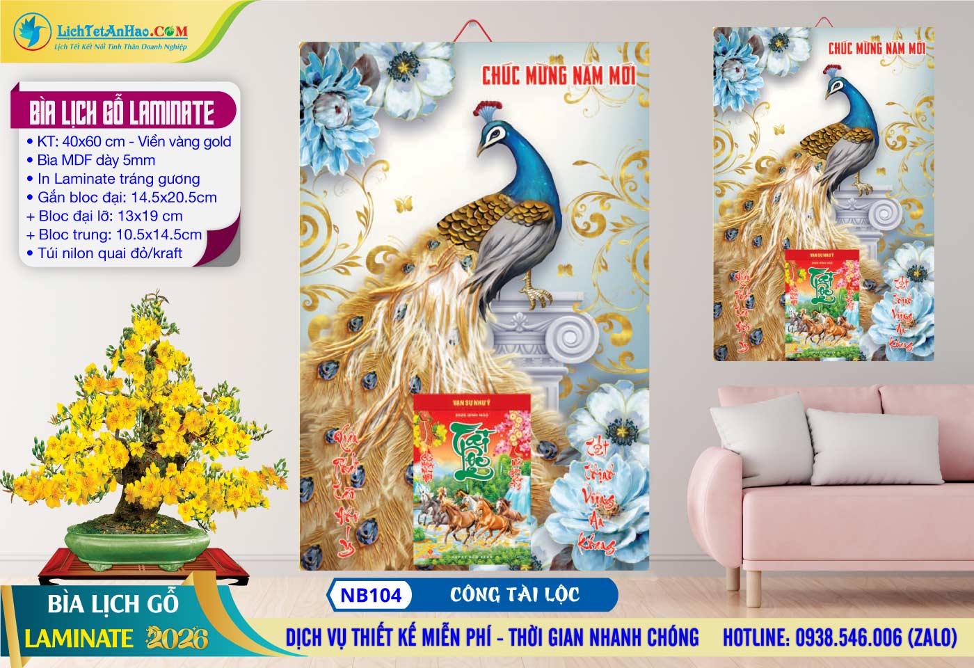 Bìa Lịch Gỗ (40×60) Laminate – NB104 – Công Tài Lộc