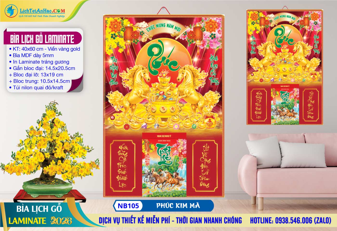 19 – Bìa Lịch Gỗ (40×60) Laminate – NB105 – Phúc Kim Mã Bìa Lịch Gỗ (40x60) Laminate - NB105 - Phúc Kim Mã
