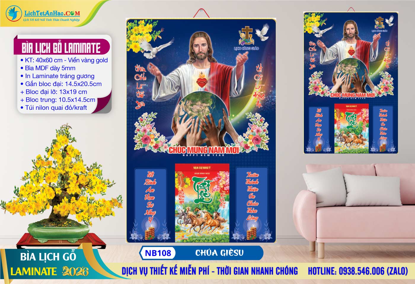 Bìa Lịch Gỗ (40×60) Laminate – NB98 – Sánh Đôi