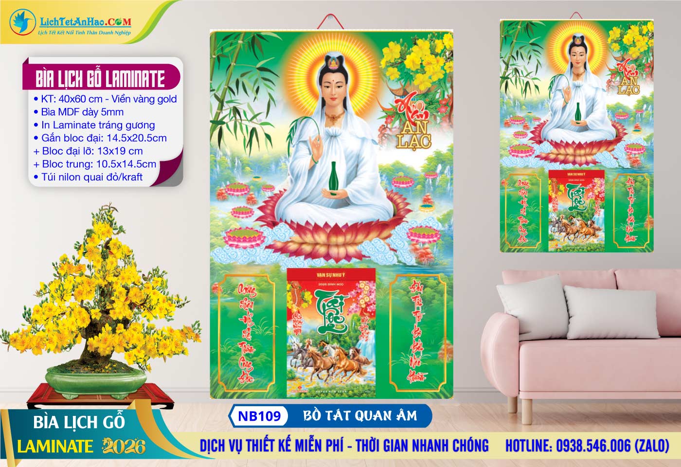 23 – Bìa Lịch Gỗ (40×60) Laminate – NB109 – Bồ Tát Quan Âm