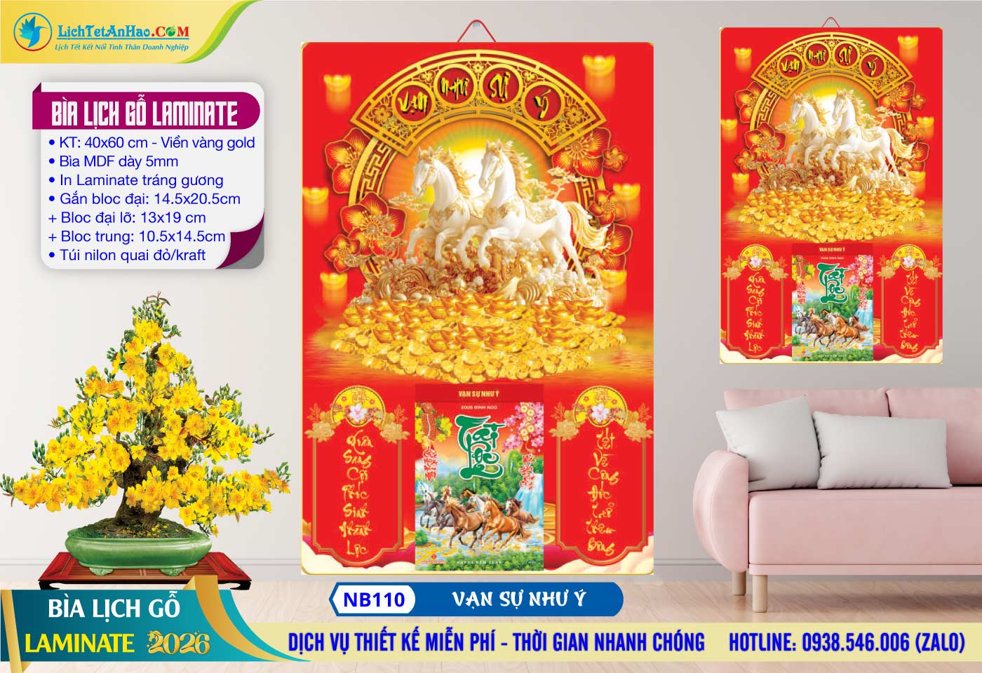 Bìa Lịch Gỗ (40×60) Laminate – NB110 – Vạn Sự Như Ý