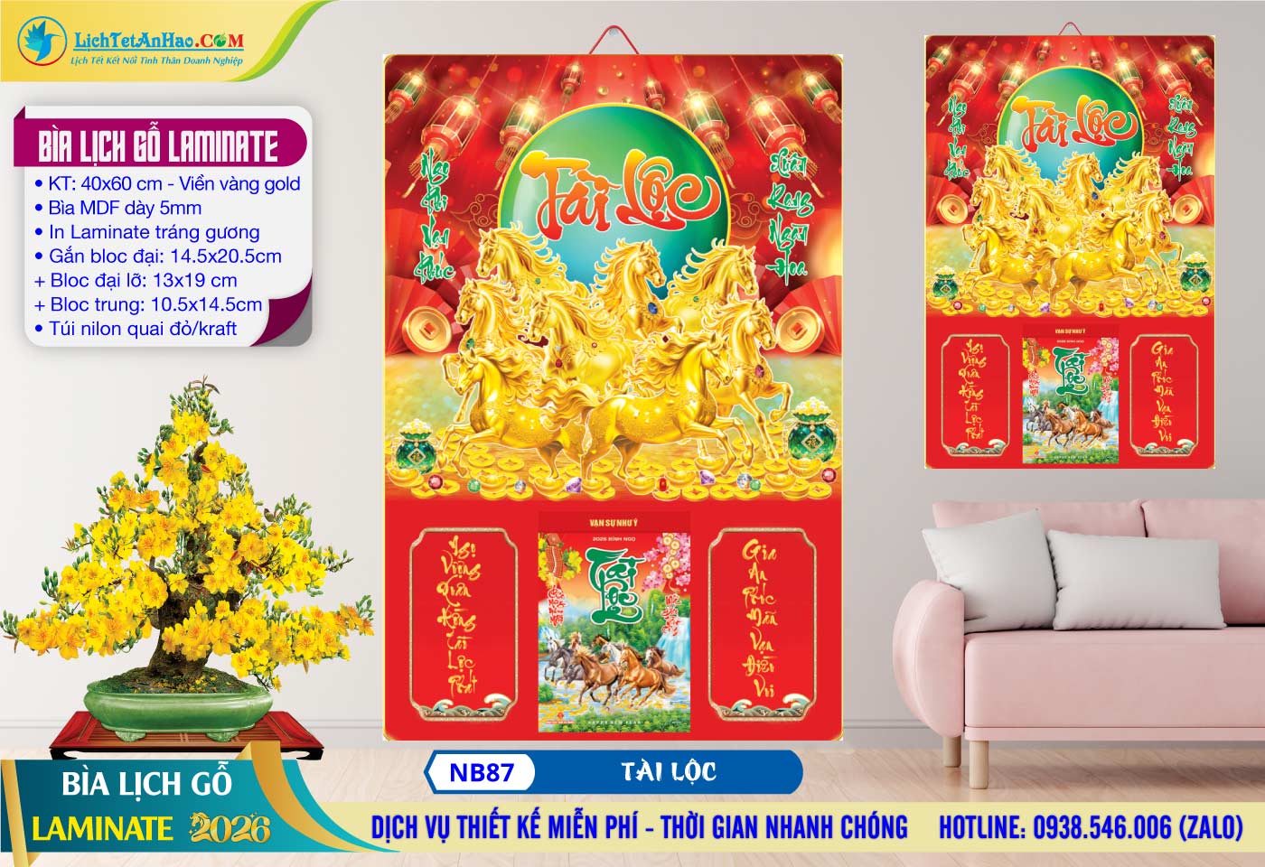 1 – Bìa Lịch Gỗ (40×60) Laminate – NB87 – Tài Lộc