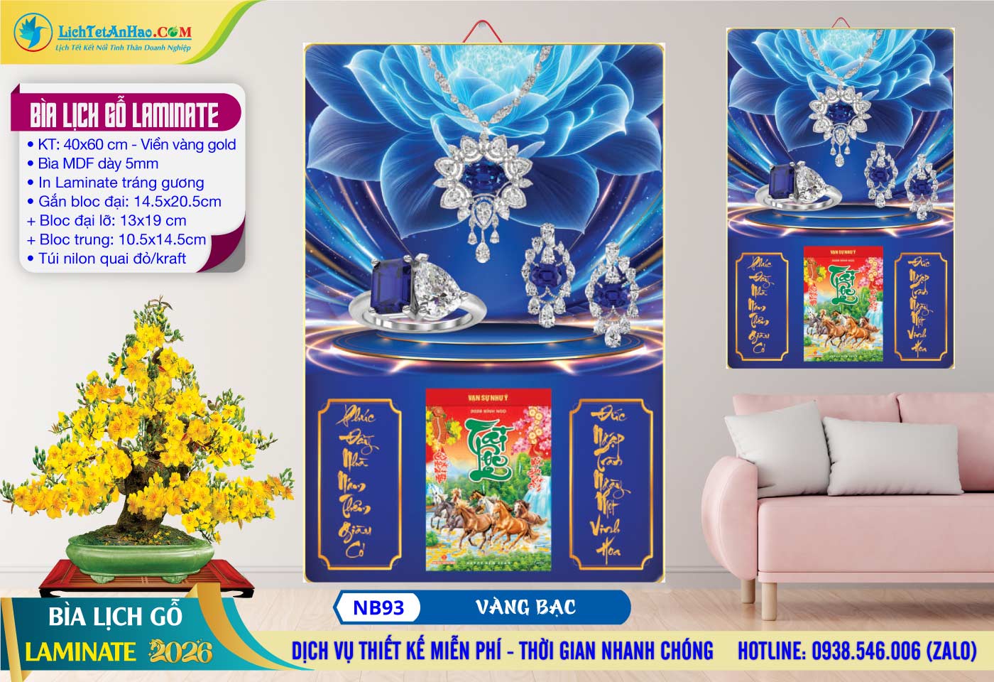 Bìa Lịch Gỗ (40×60) Laminate – NB93 – Vàng Bạc