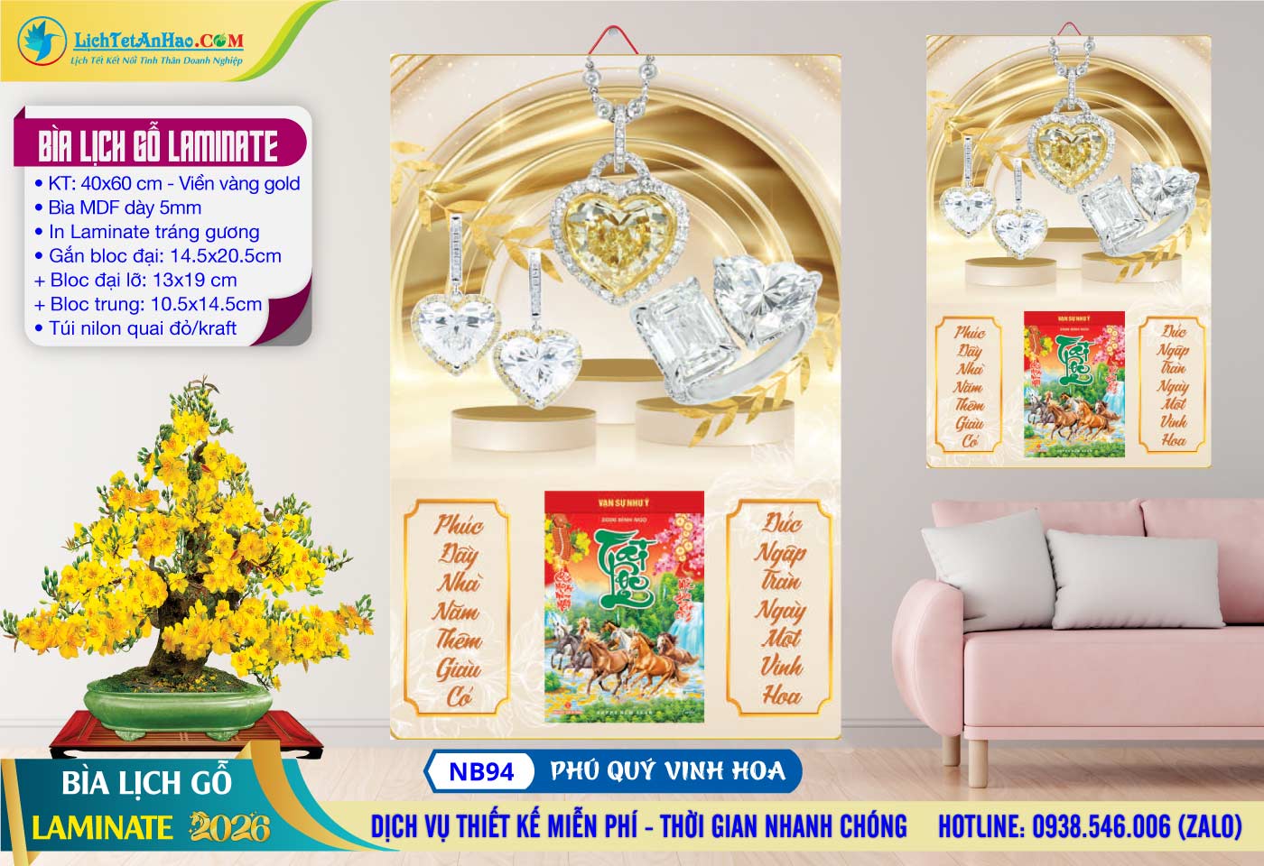 Bìa Lịch Gỗ (40×60) Laminate – NB94 – Phú Quý Vinh Hoa