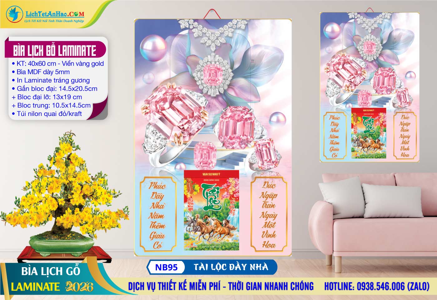 Bìa Lịch Gỗ (40×60) Laminate – NB95 – Tài Lộc Đầy Nhà