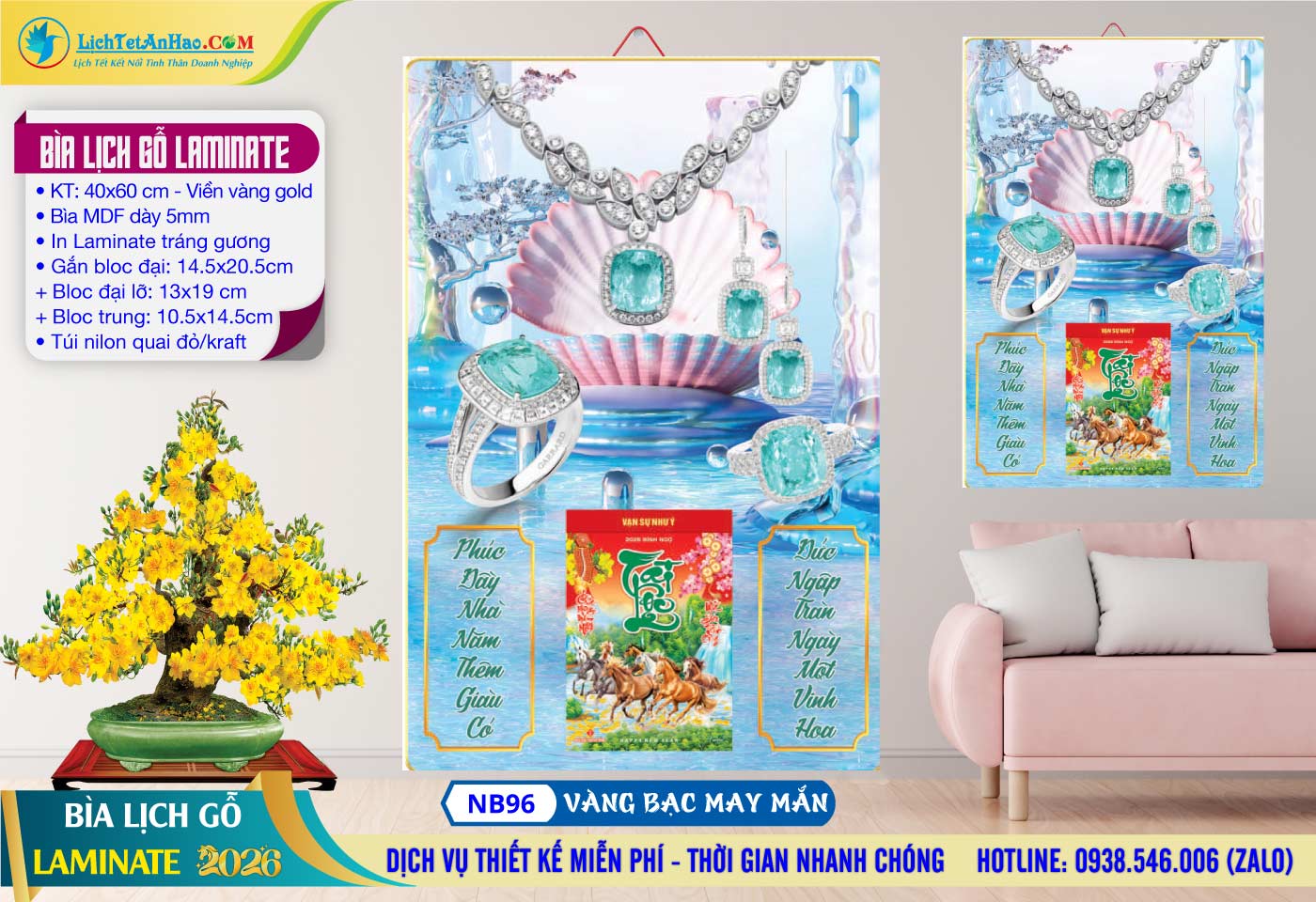 9 – Bìa Lịch Gỗ (40×60) Laminate – NB95 – Tài Lộc Đầy Nhà