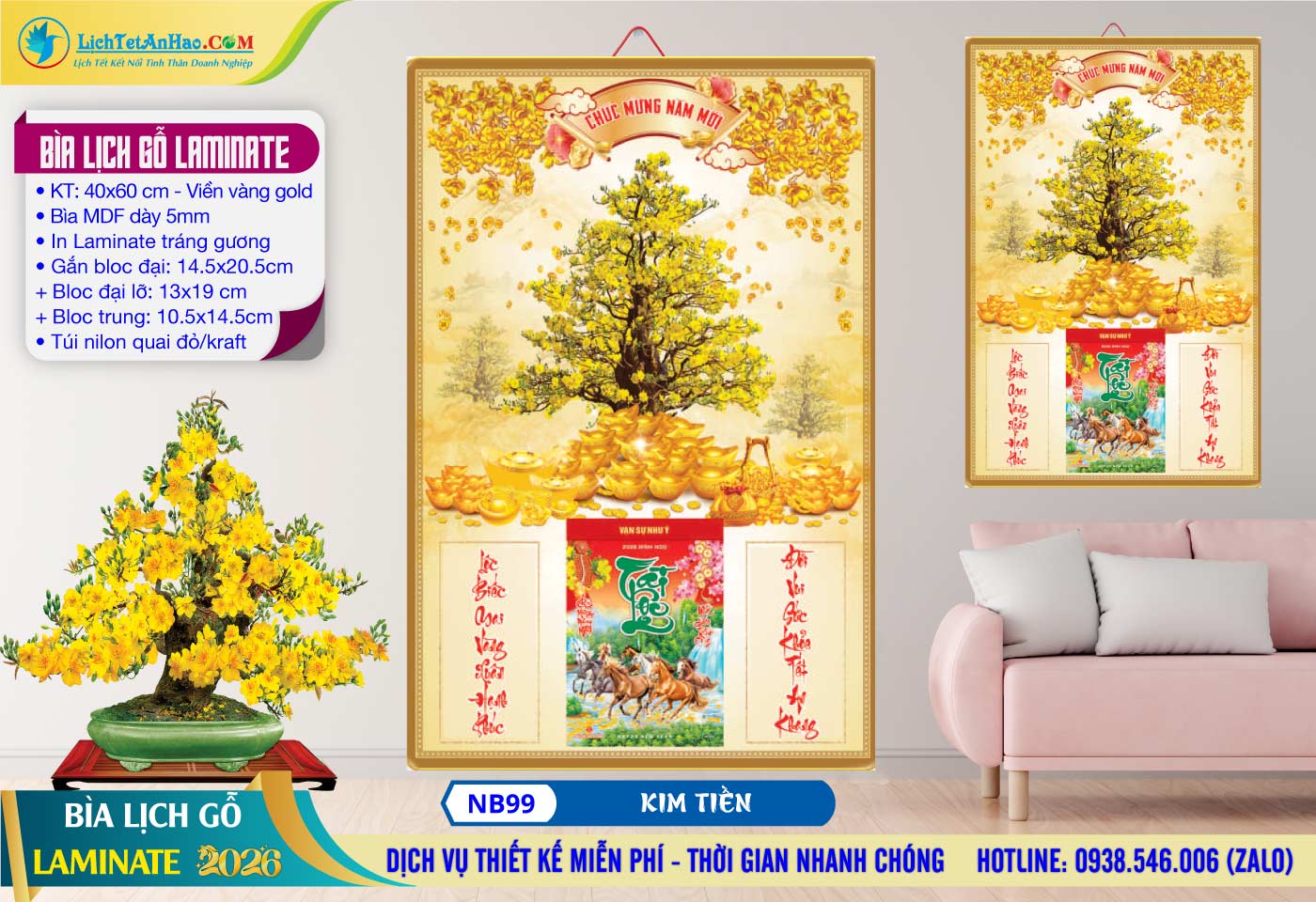 Bìa Lịch Gỗ (40×60) Laminate – NB99 – Kim Tiền