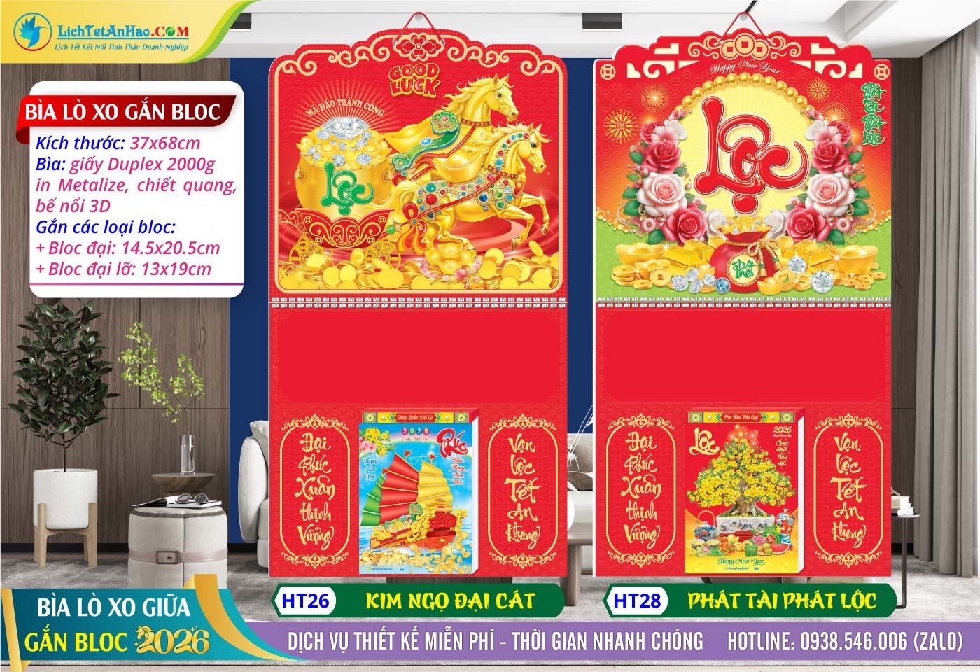 2 – Bìa Lò Xo Giữa (37x68cm) Bế Nổi – HT26 – Kim Ngọ Đại Cát + HT28 – Phát Tài Phát Lộc