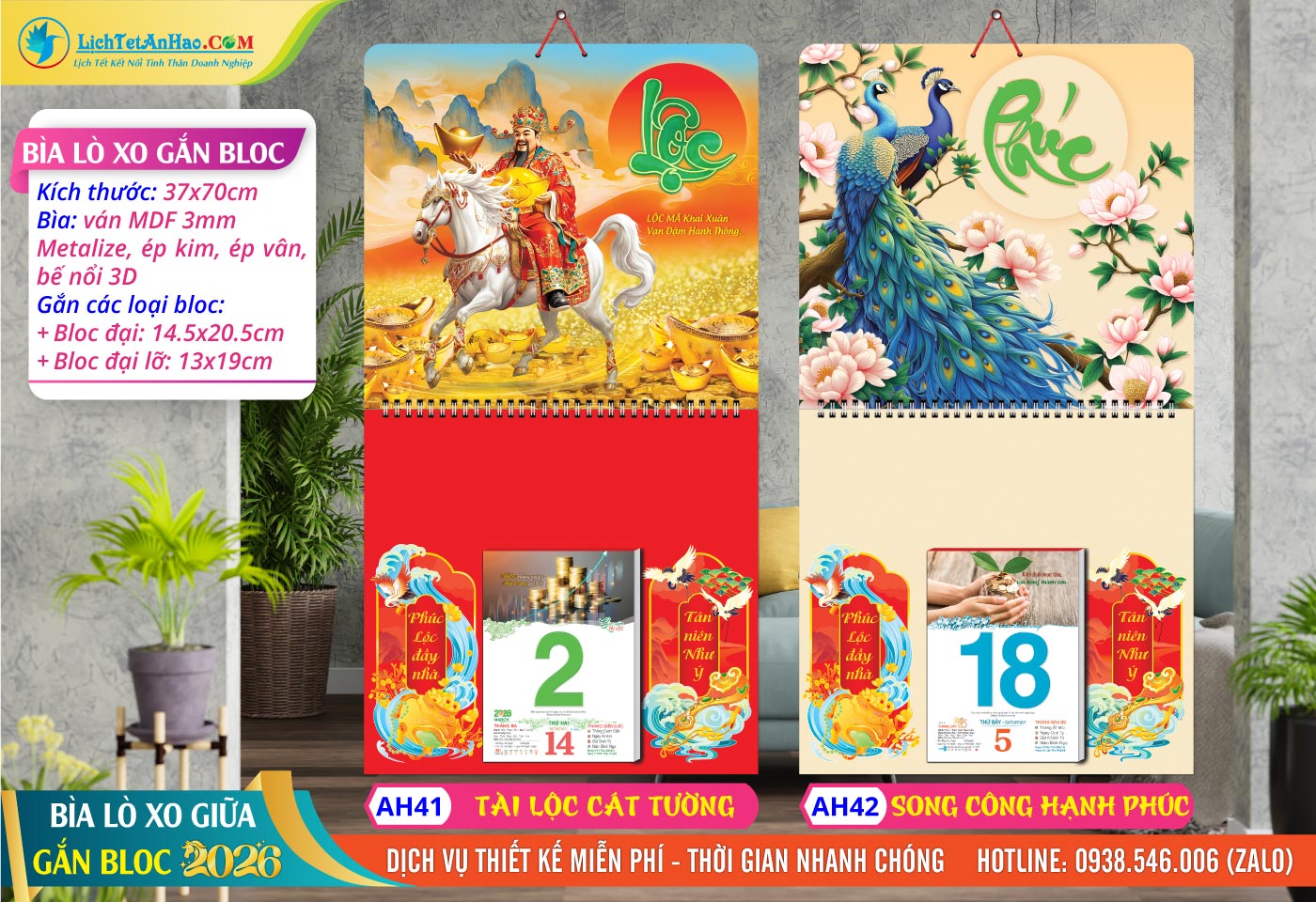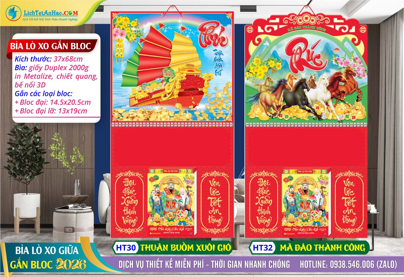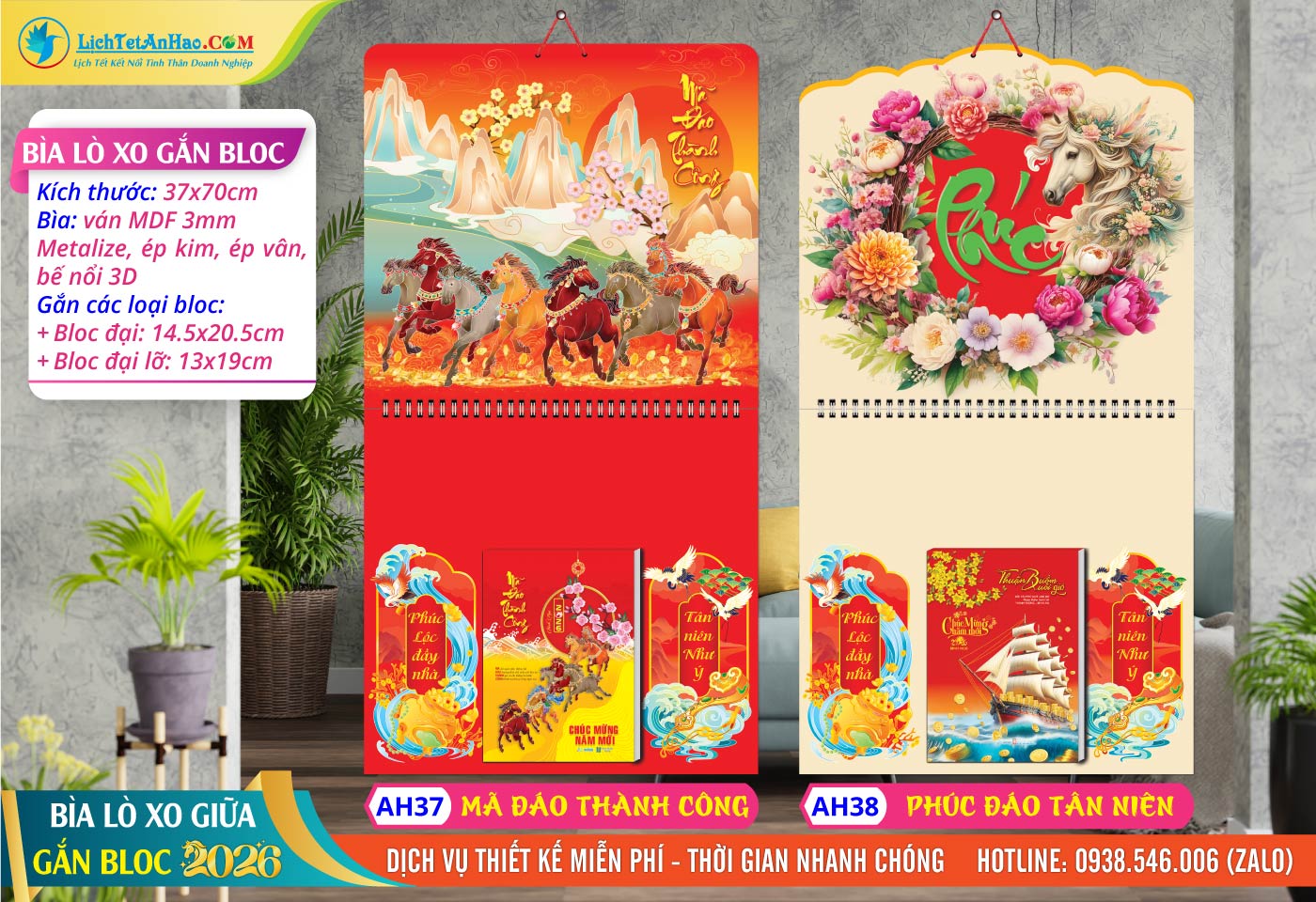 1 – Bìa Lò Xo Giữa (37x70cm) – MS: AH37 – Mã Đáo Thành Công + MS: AH38 – Phúc Đáo Tân Niên